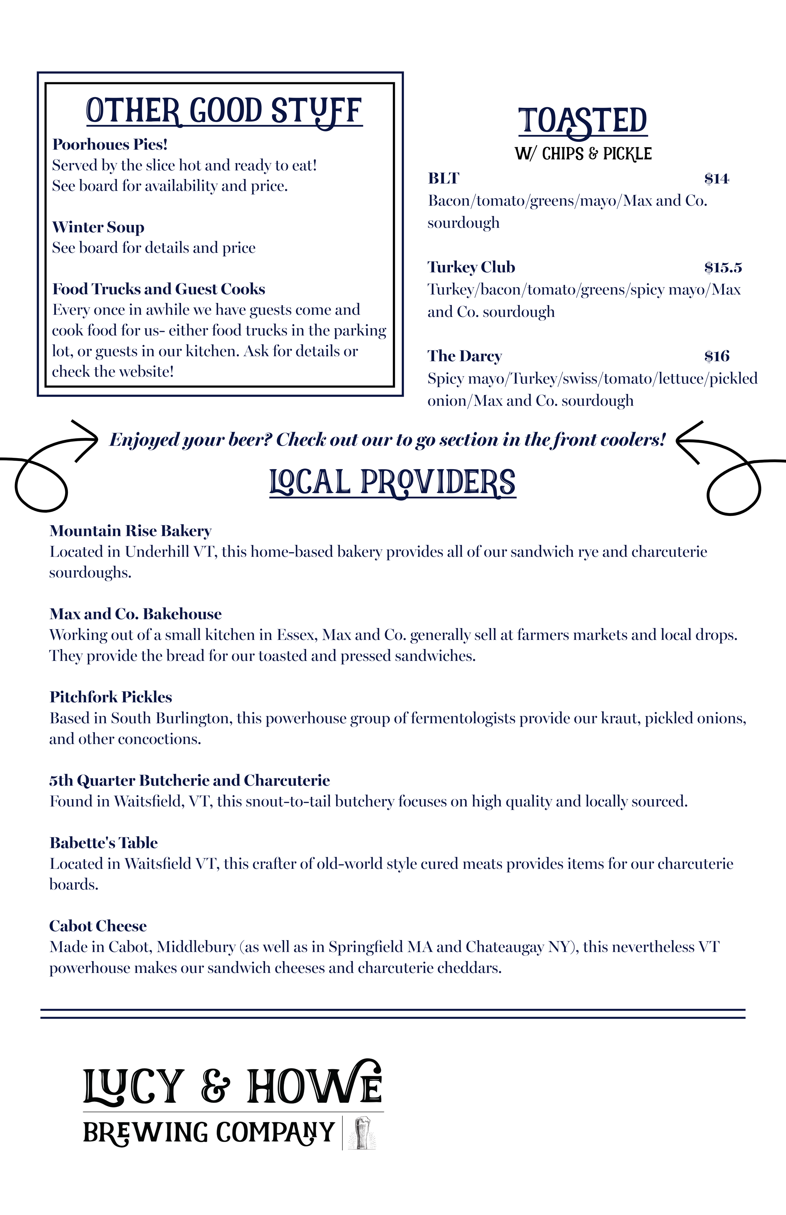 And the new menu is live! Come and get 5th Quarter hot dogs, sandwiches with Max and Co sourdough, and all the other in-house goodies we’re happy to make.